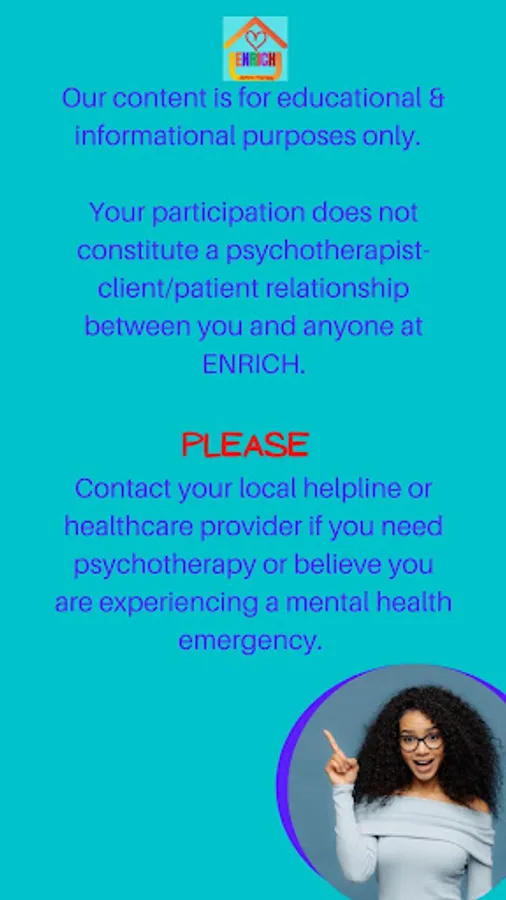 The ENRICH App is not a replacement for psychotherapy. It’s a gateway to psychotherapy…