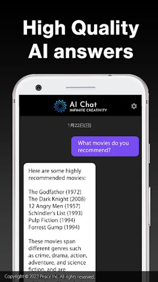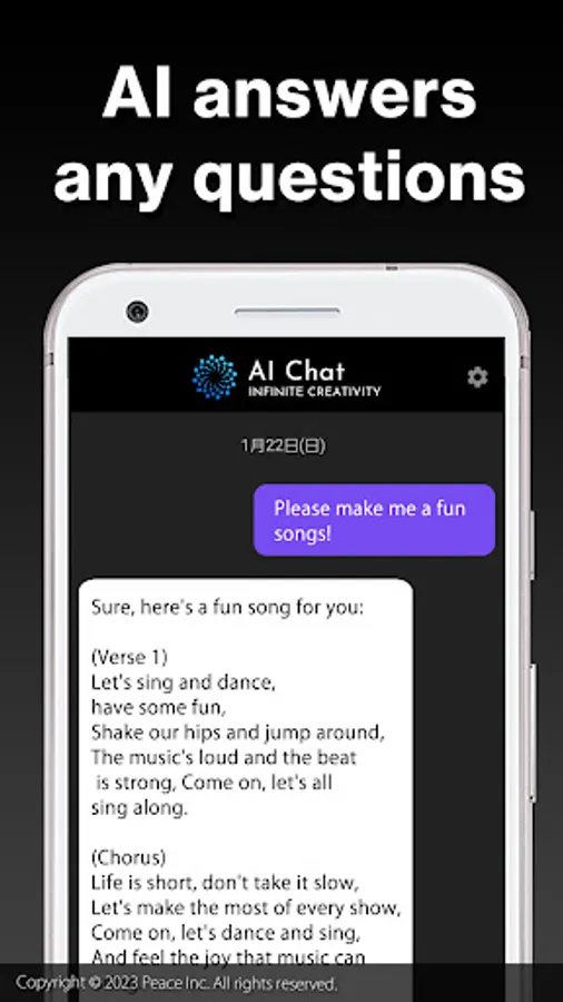 This is the AI chat app powered by GPT-3.5-turbo. By using the latest AI technology, it can answer users' questions appropriately.