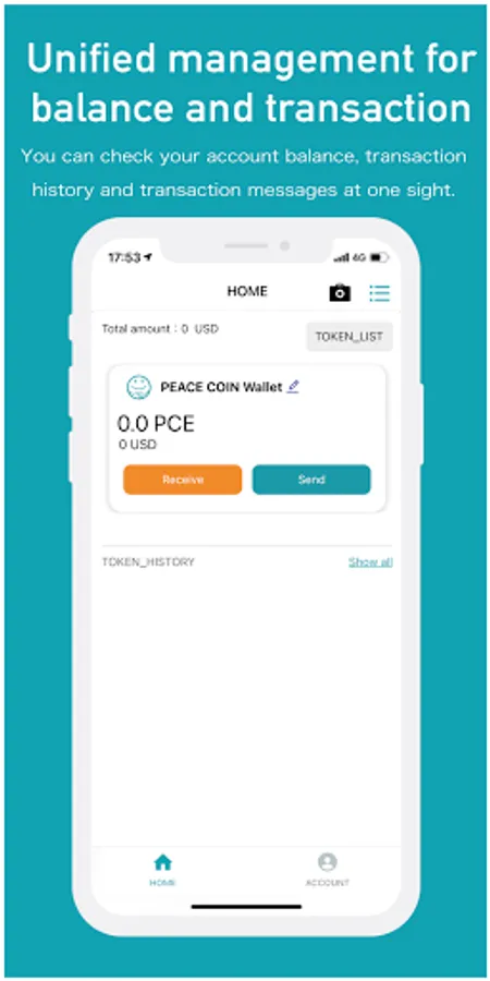 Electronic Wallet Application to manage PEACE COIN (Blockchain) Tokens and Ethereum