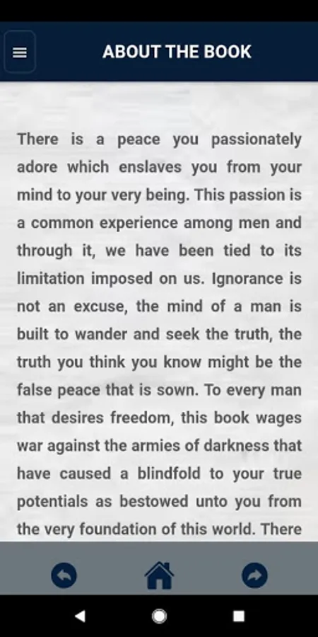 of a man is built to wander and seek the truth, the truth you think you know might be the false peace that is sown. To every man that desires freedom, this book wages war against the armies of darkness that have caused a blindfold to your