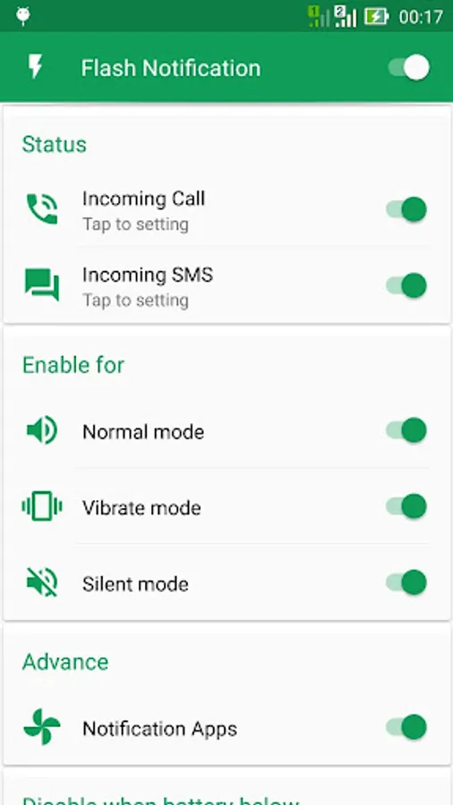 ✓ Turn off flash alerts automatically when battery is low, help you save more battery