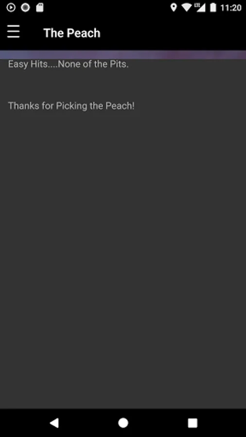 Relax and unwind with beautiful instrumental favorites. These are Easy Hits with None of the Pits - song after song with minimal interruptions. Take a break from the everyday and escape today! Thanks for picking The Peach!