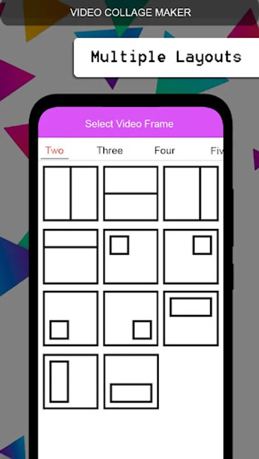 - Supports video collage of 2, 3, 4 frames layouts.