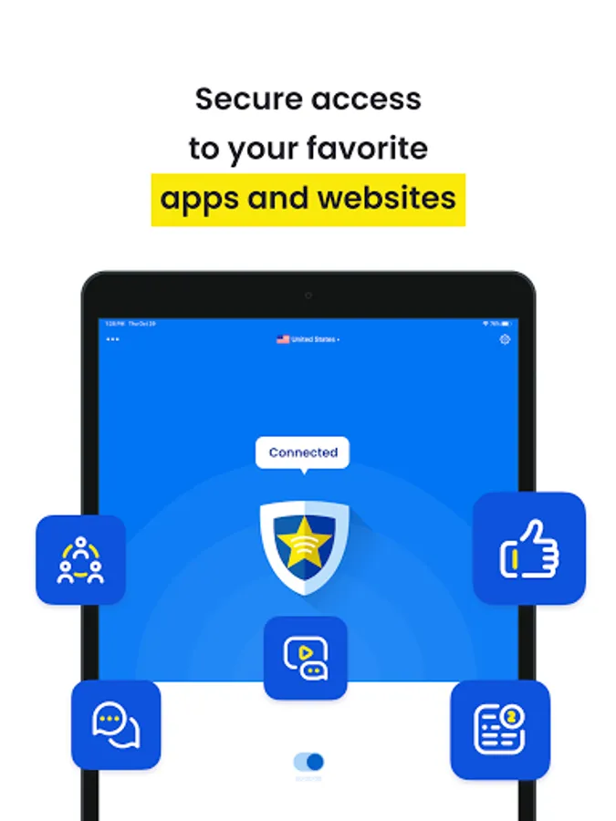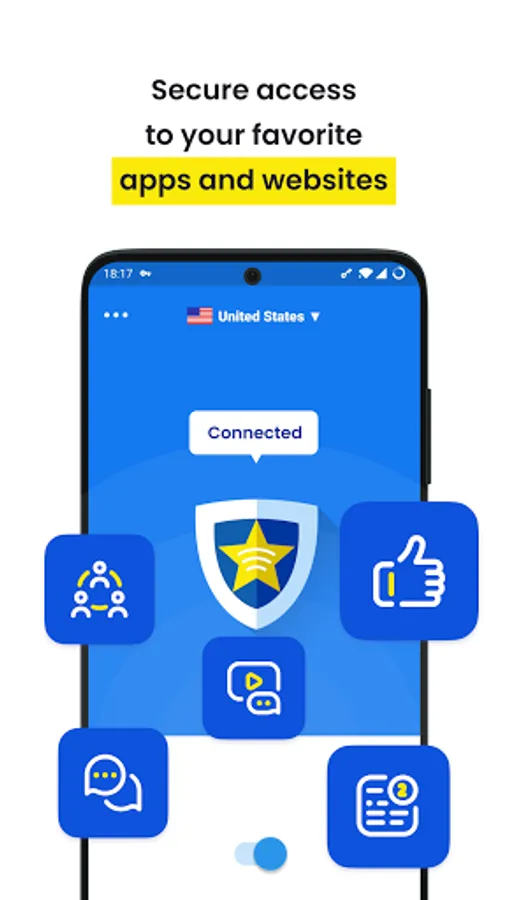 You can unblock any apps or websites using Star VPN. Access social networks such as Facebook, Twitter, Youtube, and Snapchat, etc. or other blocked websites from anywhere, bypassing the government censorship and Geo-restrictions.
