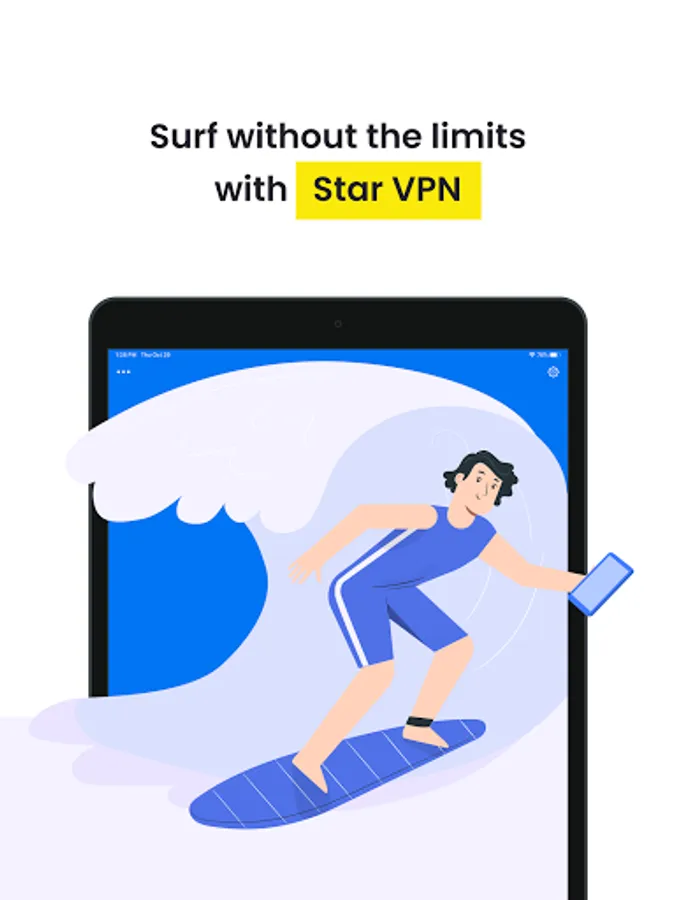 Star VPN is a free and unlimited VPN (Virtual Private Network) proxy client for Android devices with no registration needed.