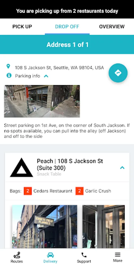 The Peach Partner App for drivers allows you to pick up the food and deliver to the ordered
