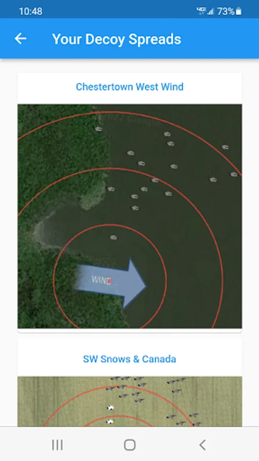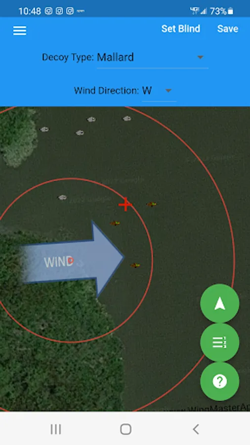 Easily create and save waterfowl decoy spreads right on the map where you actually hunt! Select your blind site and the just click the map to add decoys. You can mix and match decoy types as desire. Plan your duck and goose decoy layout before you go!