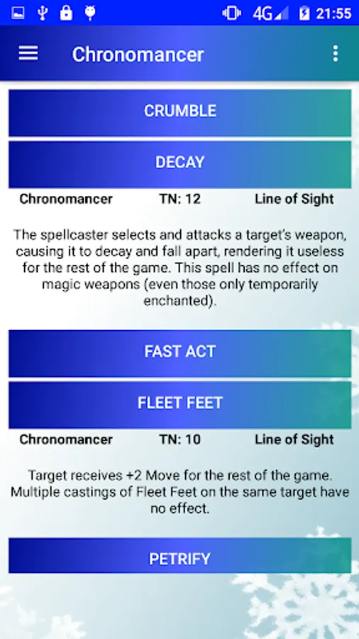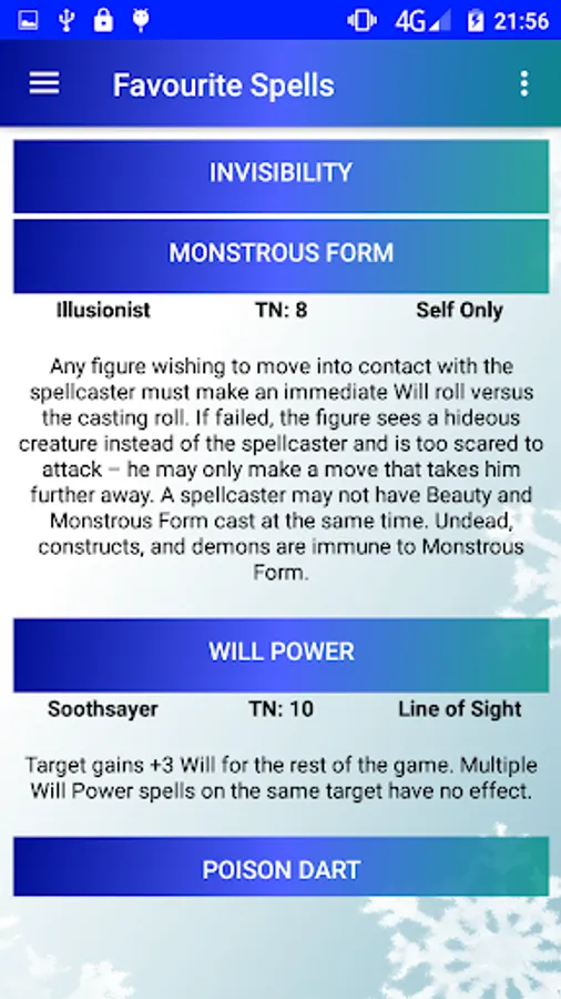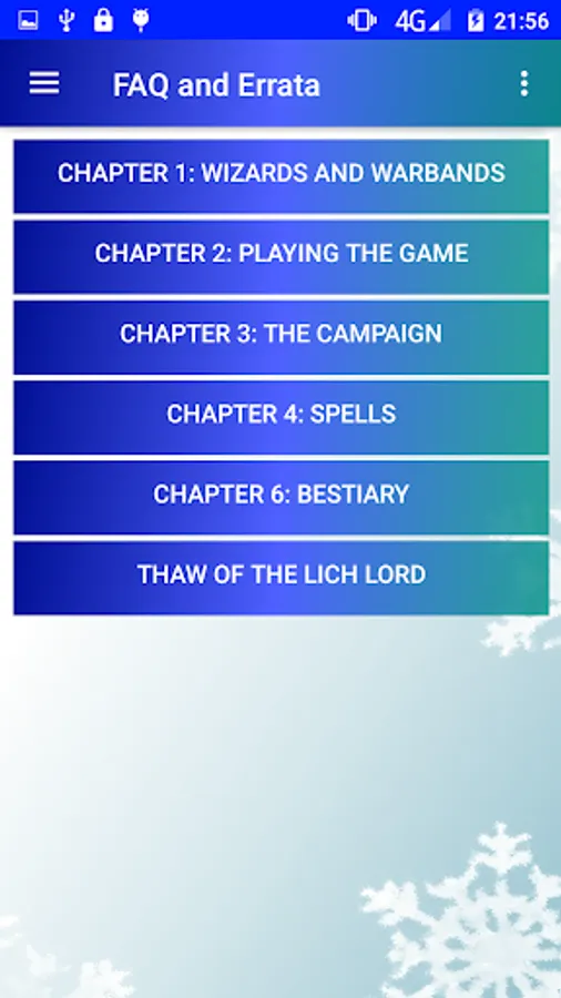 Contained within this app is reference material for Spells and Creatures, alongside the current FAQ information and commonly forgotten Optional Rules from the main rulebook