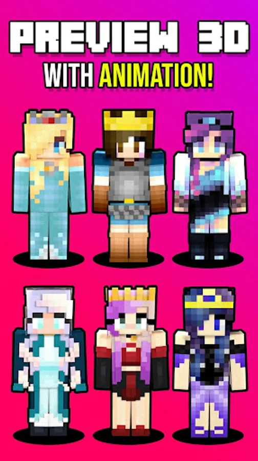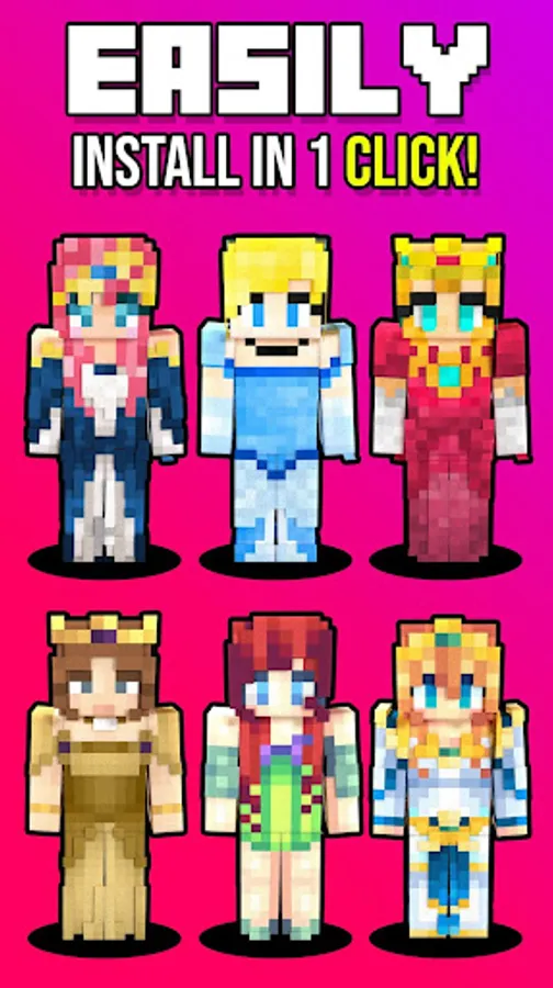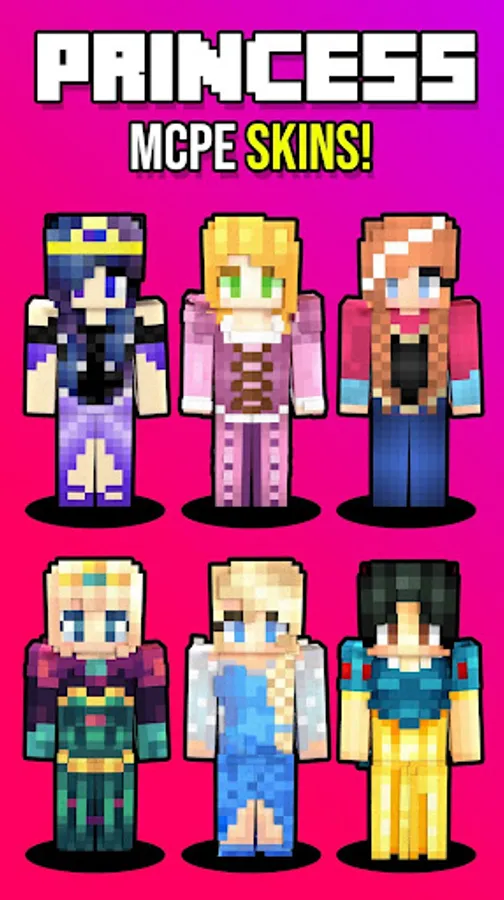 Hey! Get new Princess Skins for Minecraft for free and show how fabulous you are in minecraft online multiplayer! Install your favourite style of Princess Skins and customizable dynamic live skin with fun in Minecraft PE (MCPE) creative mode theme.