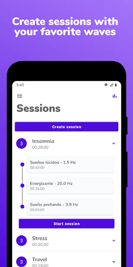 Create your own meditation sessions formed by binaural waves.