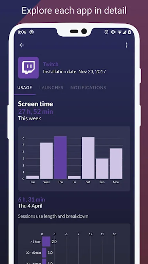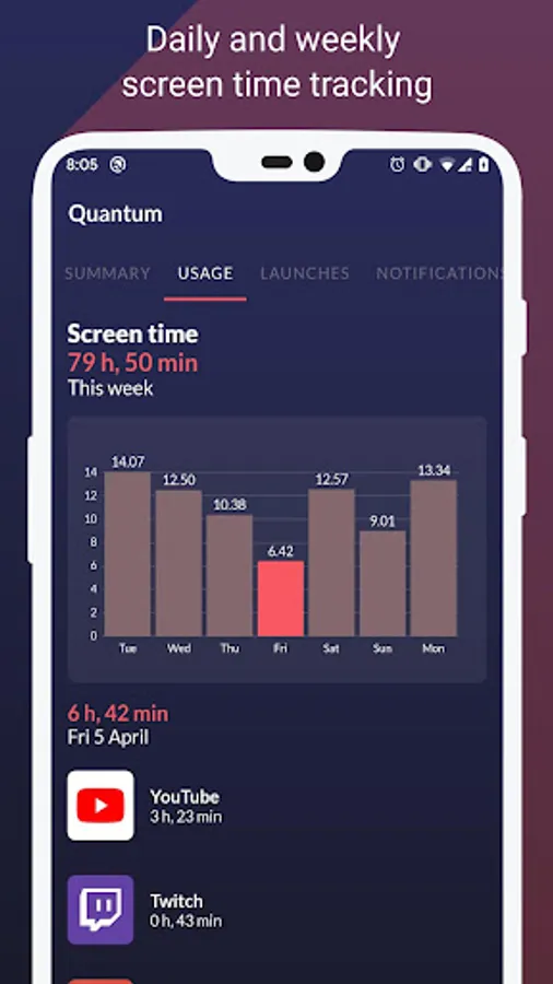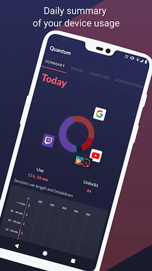 Quantum is the perfect app to visualize the screen time usage of your phone on any Android device.