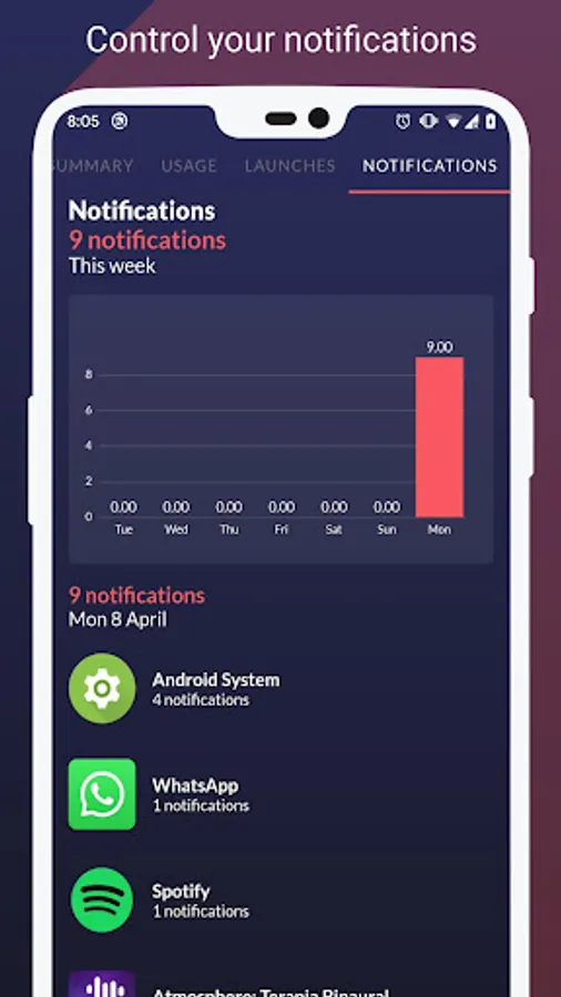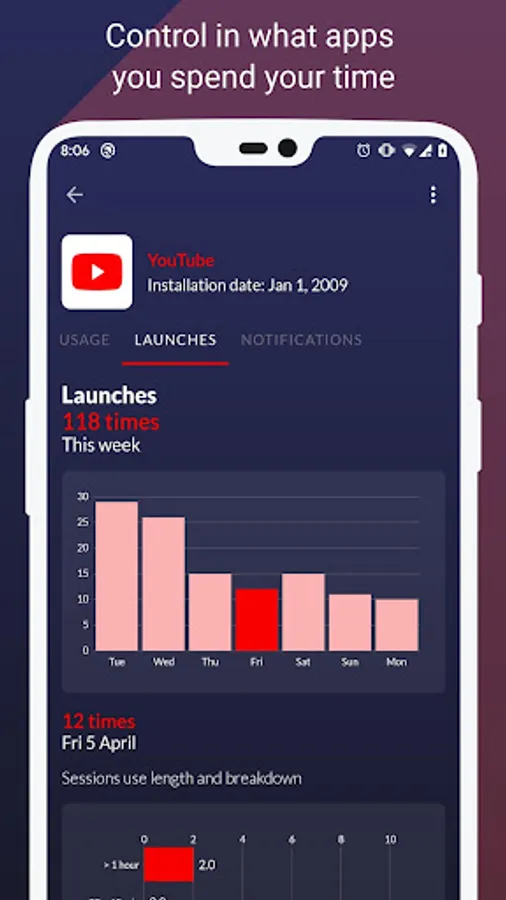 Control the time you spend using your phone and in what application you waste it. Improve your digital wellbeing.