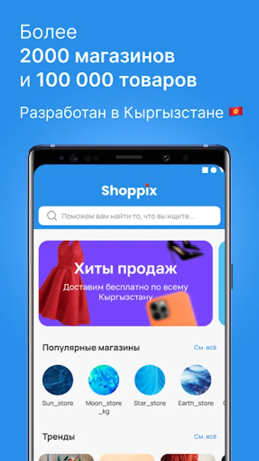 Shoppix is a convenient mobile application that unites online shops in Kyrgyzstan. Designed for online shopping where you can spend less time than usual looking for things and shops. It is very convenient to be at home to choose and know where what is.