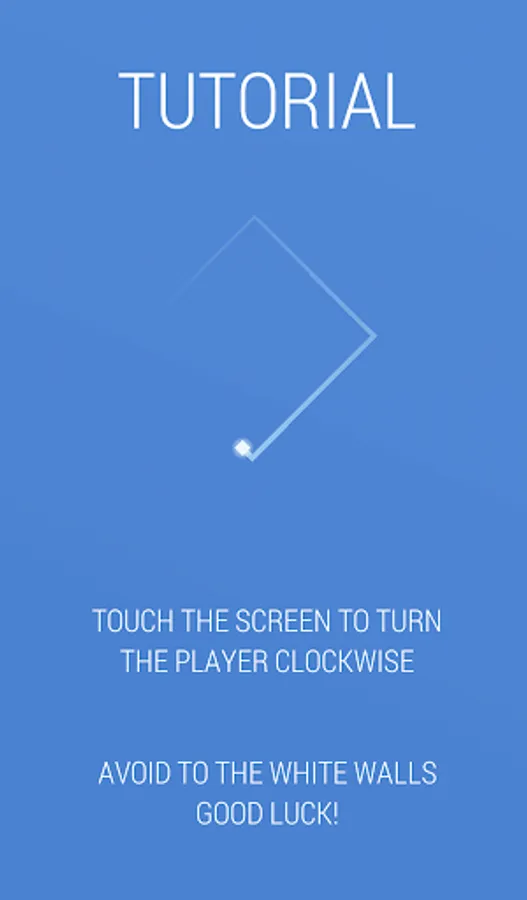 Tap on the screen to change the player's direction by 90 degrees clockwise. Try to evade the white walls.