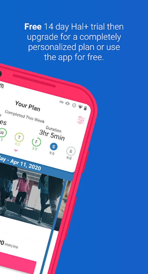 - Hal gives you detailed daily workouts with distance, duration, and paces.