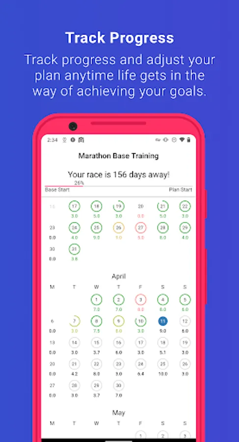 - Keep track of your training plan stats. Average pace, total distance, and more.