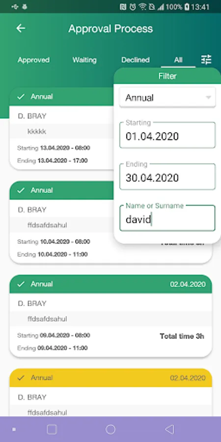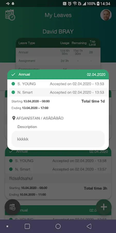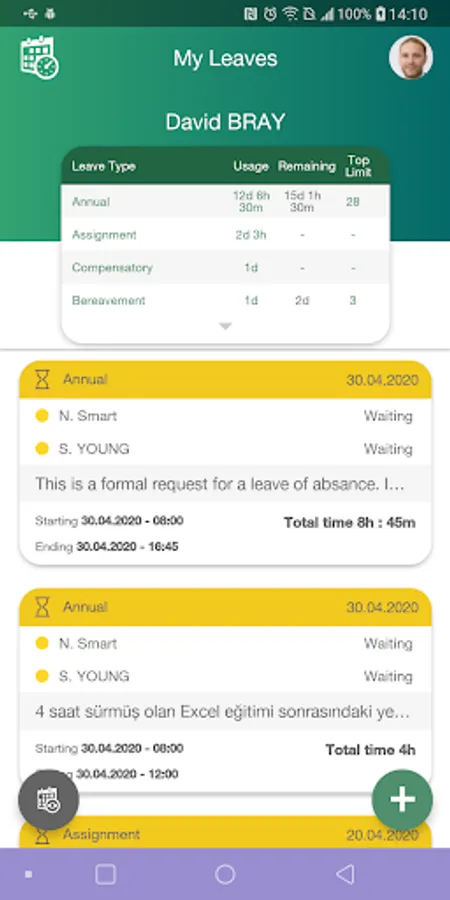 *See the total amount of annual leave usage periods and review your leaves according to the leave types.