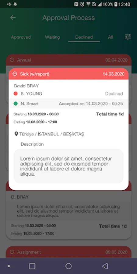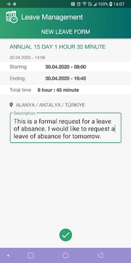 Leave Management, enables employees to quickly get leave request and follow up the leave request process. It provides to manage that process easier by team leaders and human resources members at the same time.
