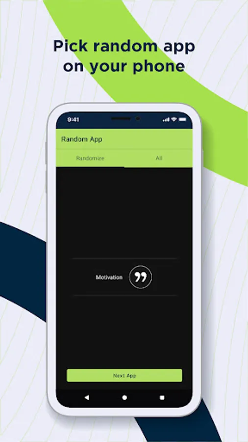 Just download, press the button and the random picker will randomly pick an app for you to open and explore.