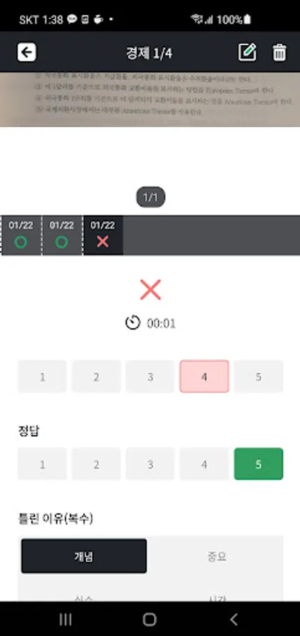 Incorrect answer registration is supported by camera for 30 seconds, review and history function.
