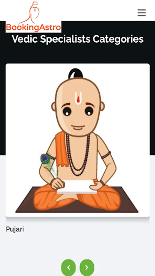 BookingAstro is a web platform to connect peoples with Vedic Specialists like Astrologers, Vastu Consultants, Pujari, Numerologist, Tarot Card Readers, Palmist etc., with transparent pricing and hassle-free appointment or services booking process.
