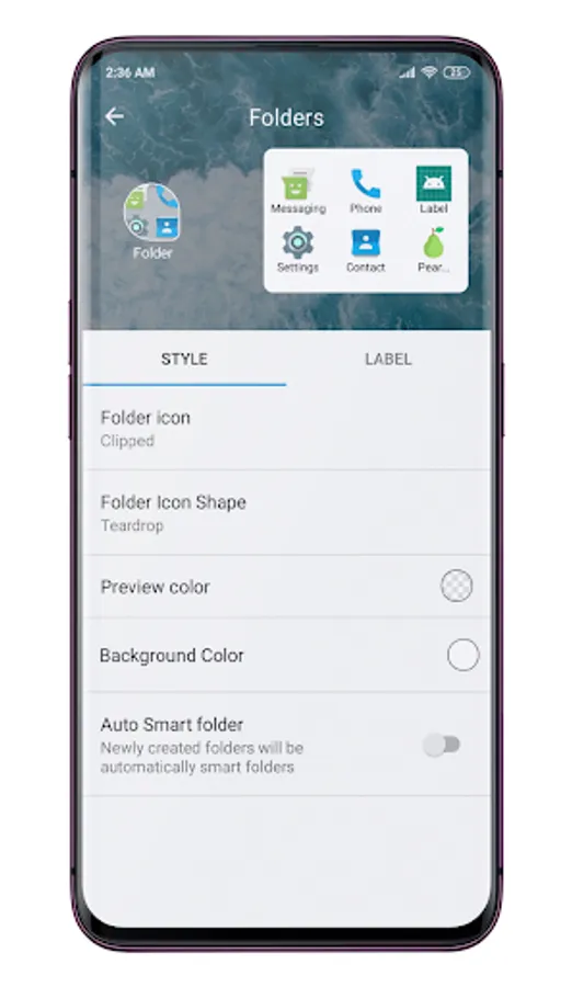 • Customise the layout of folders, colors of preview, background ,labels, folder opening animation