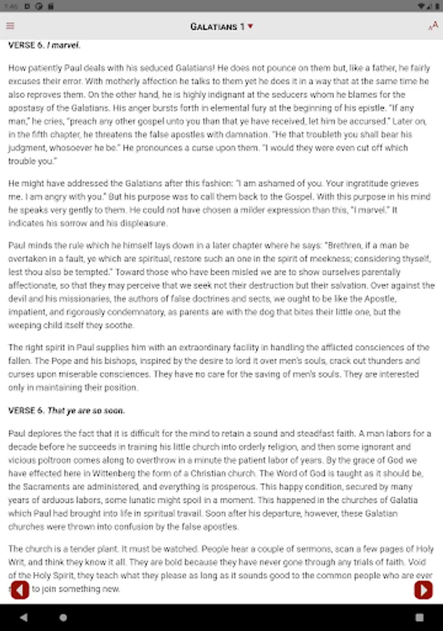 Martin Luther’s commentary on the book of Galatians in an easy-to-use app (abridged American English translation by Theodore Graebner). This commentary is based on a series of lectures that Dr. Martin Luther gave in 1531. From Graebner’s preface: