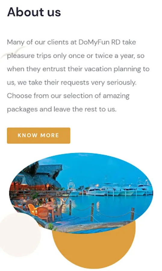 Muchos de nuestros clientes en DoMyFun RD realizan viajes de placer solo una o dos veces al año, por lo que cuando nos confían la planificación de sus vacaciones, tomamos muy en serio sus solicitudes. Elija entre nuestra selección de increíbles paquetes y déjenos el resto a nosotros.