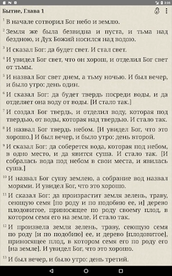 The Bible Synodal Translation is an electronic implementation of this excellent book. Now you can read the Bible directly from your phone or tablet. The Bible is fully installed on the device and does not require a permanent Internet connection. A convenient interface of the application and the speed of its work will make reading the Bible as enjoyable as possible.