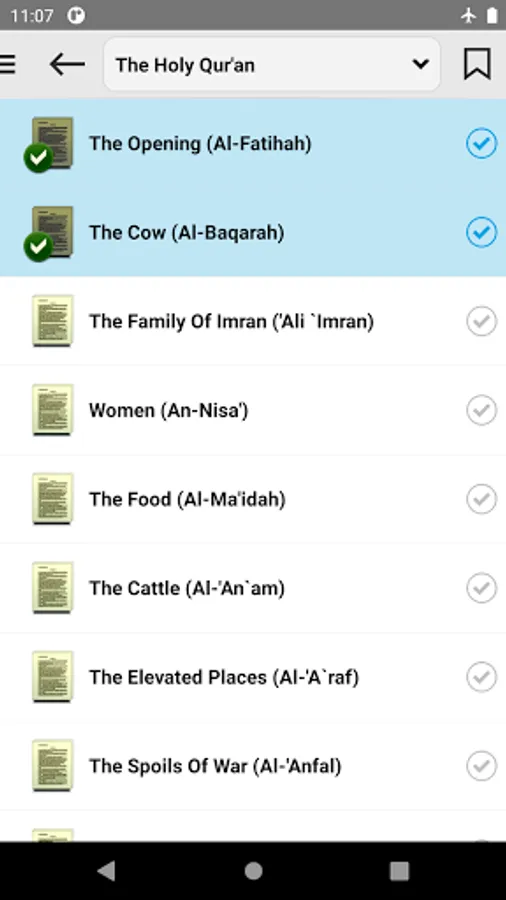 • Possibility to mark sura that you have read