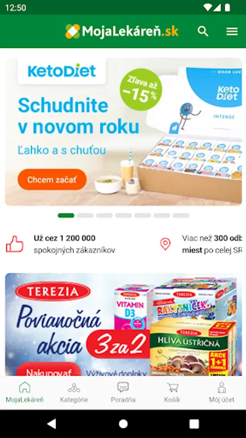 MojaLekáreň.sk has been operating on the Slovak market since 2006. The wide assortment ranges from over-the-counter medicines to vitamins, cosmetics, healthy food, to needs for children and mothers, organic drugstores or needs for pets. We will deliver your purchase to you from the second day after ordering - by post, courier or to one of more than 300 Packet collection points throughout the Slovak Republic. We allow payment with employee benefits. We allow payment by employee benefits, card, bank transfer and cash on delivery. The cost of postage is from EUR 1.8. And with a purchase over EUR 40, we will deliver the package to you for free.