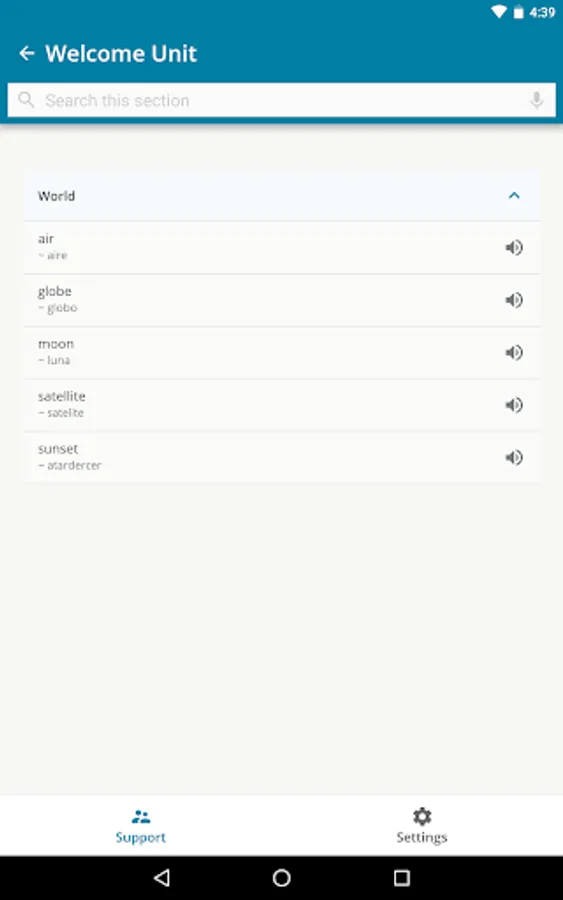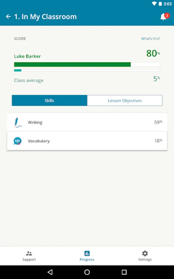 When the parent assigns a child to their account, they can browse content available for selected Pearson products – and they can keep in touch with children's objectives by accessing learning statements, which provide information on what the child is learning unit by unit. There is also a list of related vocabulary items to browse and play, so that parents and children can hear how words are pronounced correctly in English.