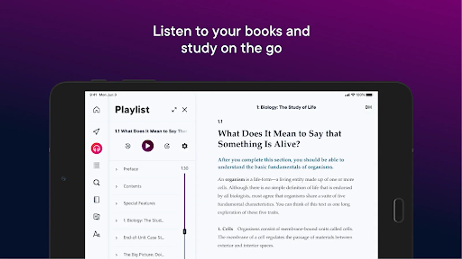 -- Have your eTextbook read aloud to you with our audiobook feature (available for most eTextbooks)