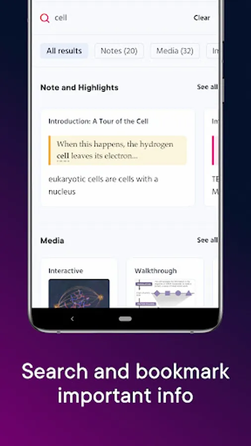 -- Search across all the content in the eTextbook to easily find exactly what you need