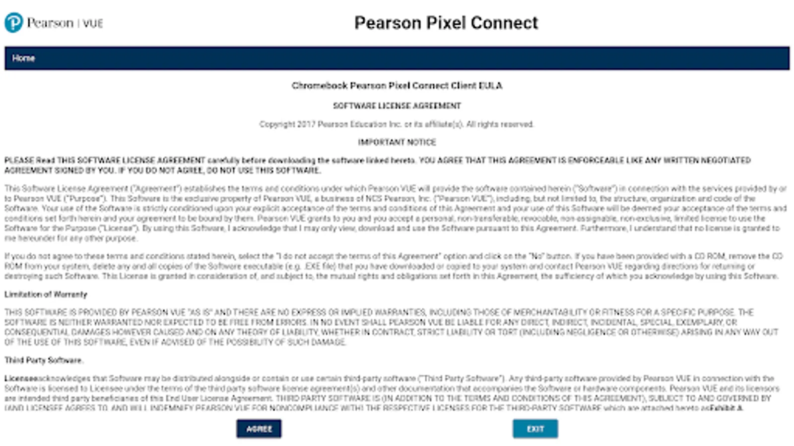 Note: Central Admin Pixel Client is for the exclusive use of an authorized Pearson VUE test center.