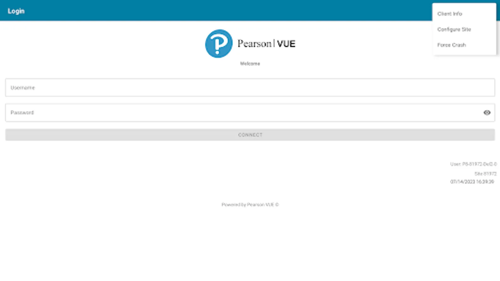 Note: Pearson Pixel Connect is for the exclusive use of an authorized Pearson VUE test center.