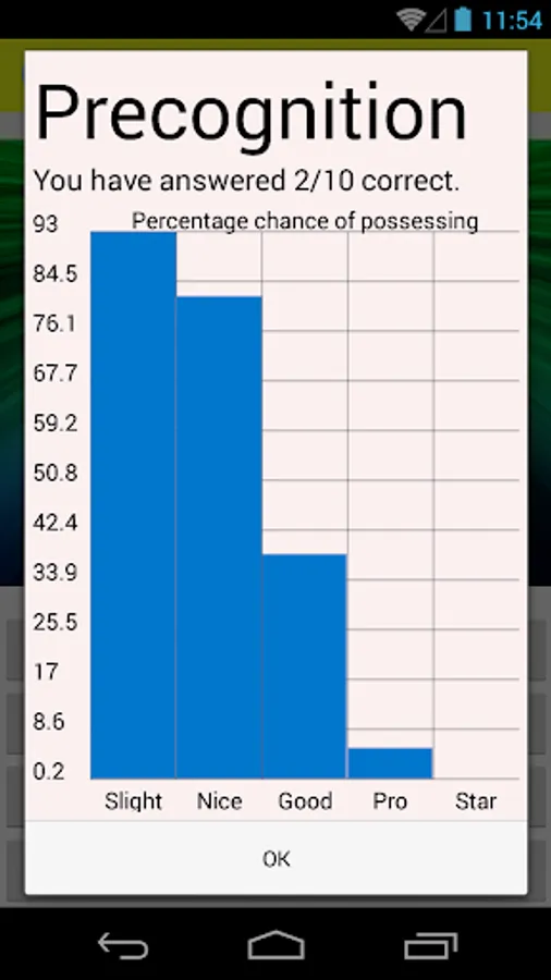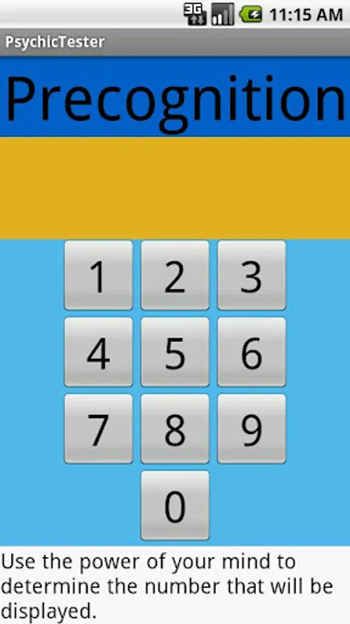 This application will test to see what probability you might possess psychic abilities. It does so using a variety of things, like your ability to predict future numbers which will be shown, see numbers at a remote distance, etc. Then, after your results are complete, it uses statistics to determine if you might possess psychic abilities.
