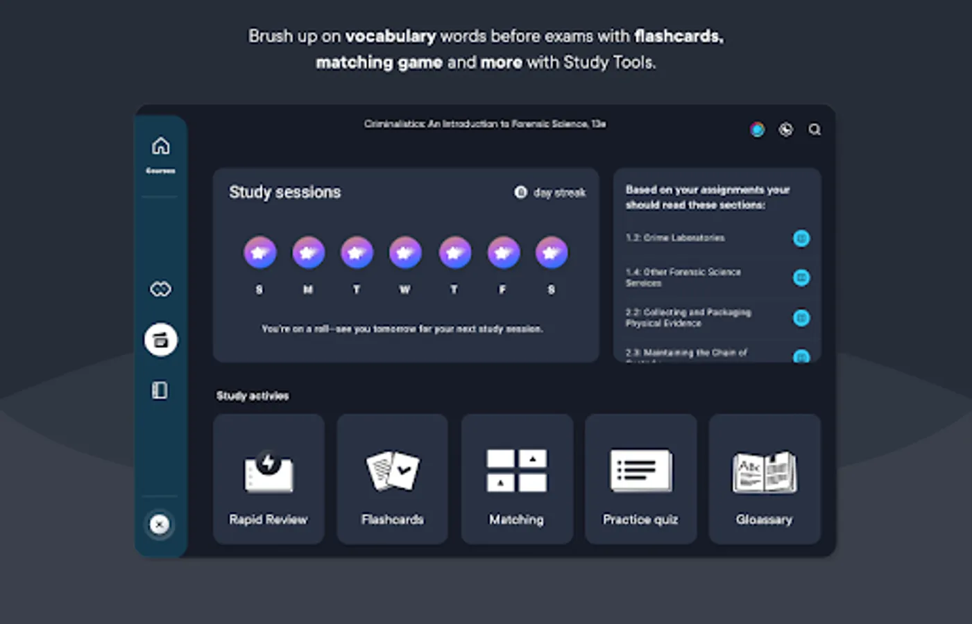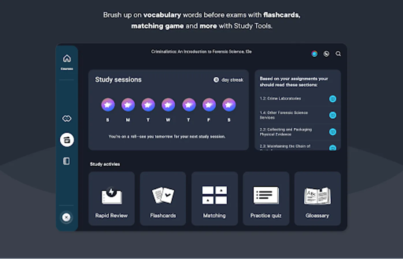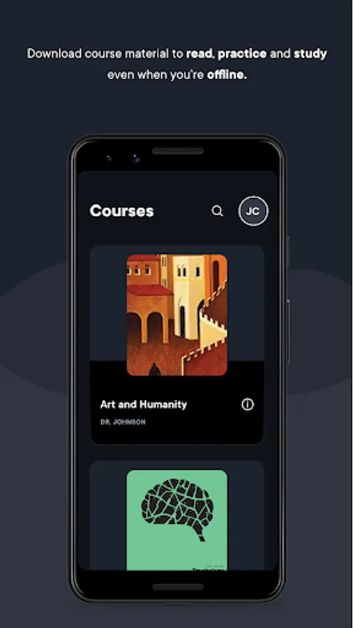 - Download course materials to your devices and read, practice, and study even when you're offline