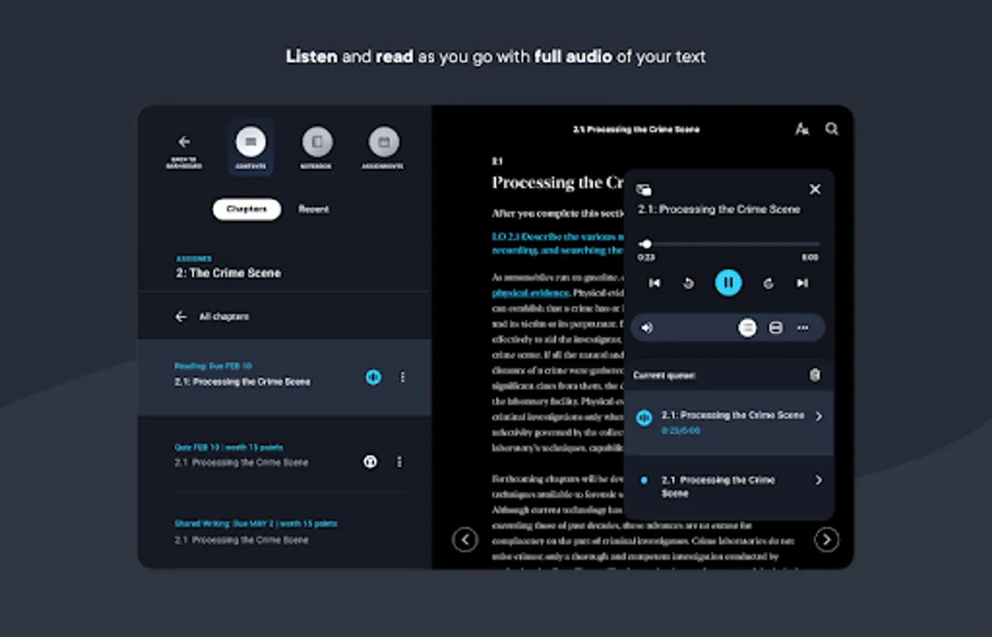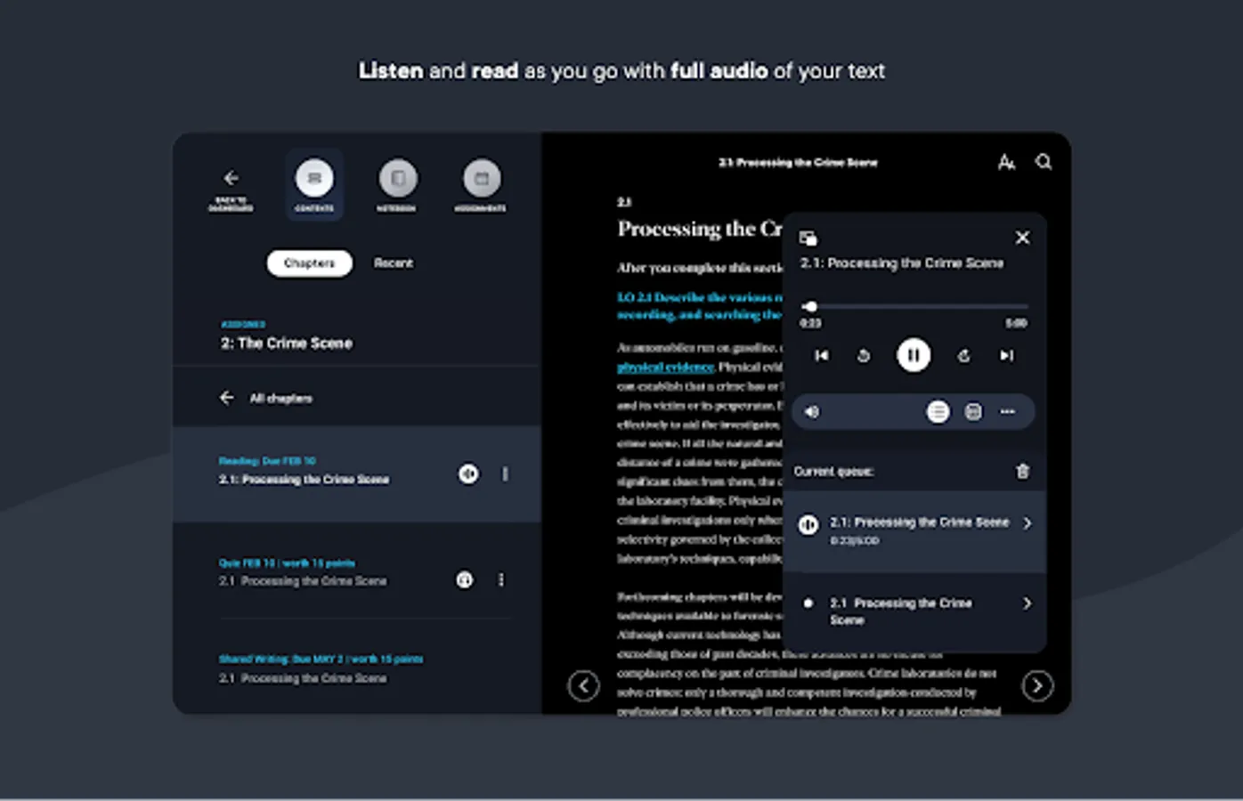 - Listen and learn as you go with full audio of your text (available for most courses)