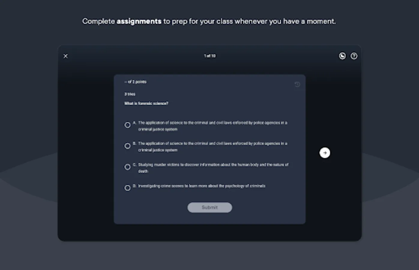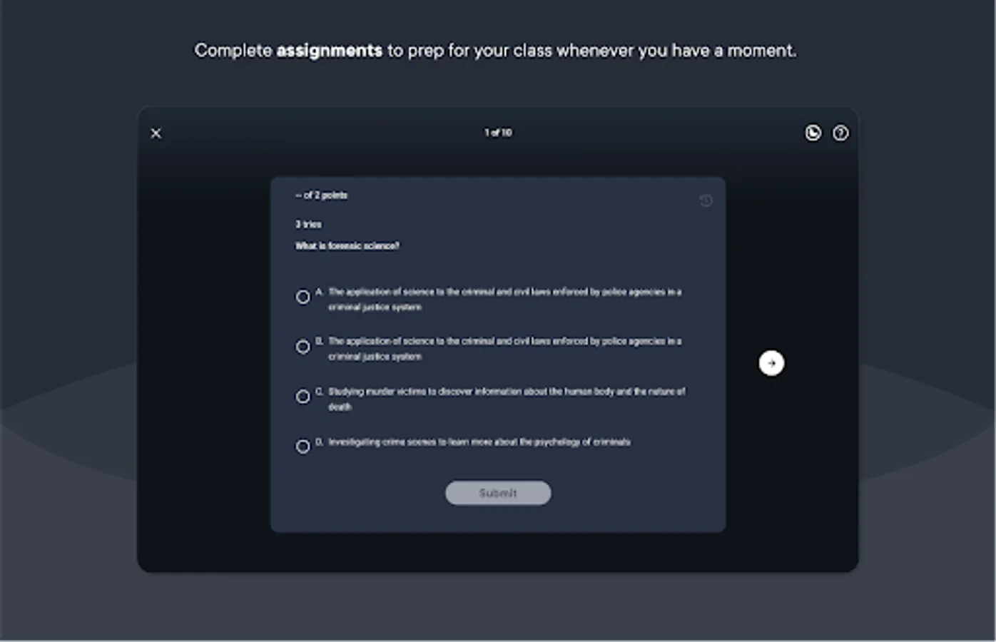 - Complete assigned quizzes on your device to prep for class whenever you have a moment