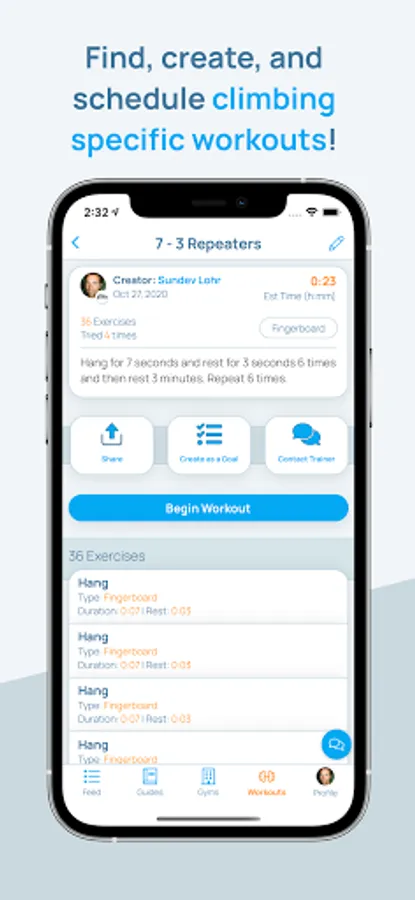• Find climbing-specific WORKOUTS & CIRCUITS that other users have created to do specifically at your gym, your local crag, or at home.