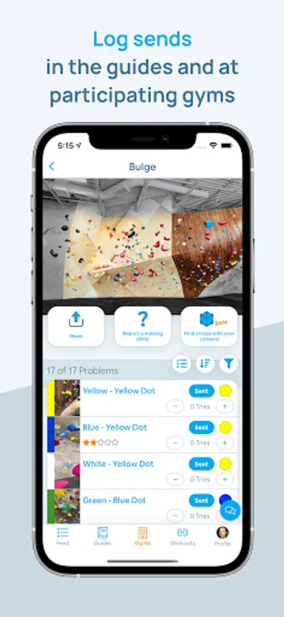 • Follow your friends in the FEED to see their sends and media or your gym to see when a new area has been reset or if any events are happening soon.