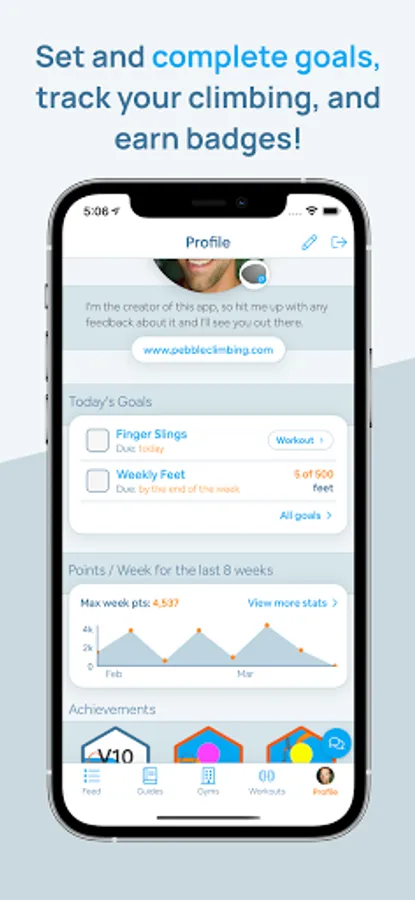 • Track your nightly sessions at the local CLIMBING GYM if they've joined Pebble or even if they haven't.