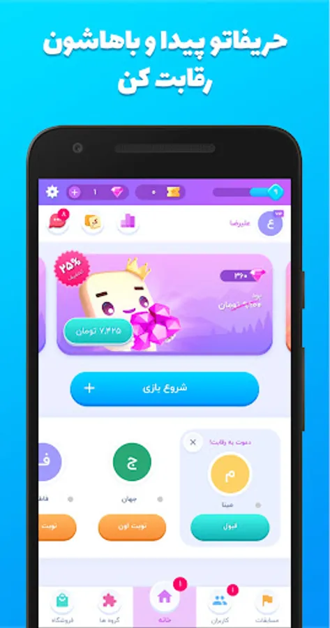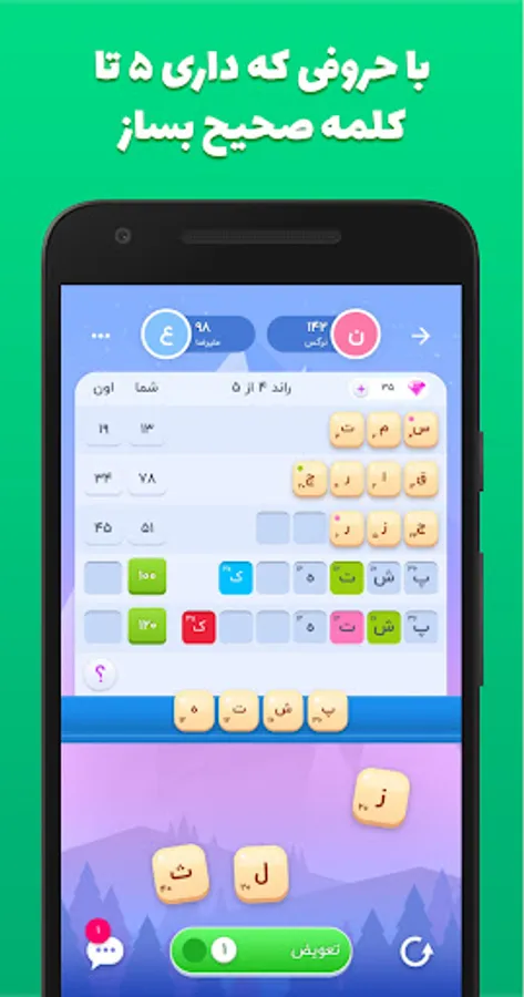 Put your pieces together to make a word with more points than your opponent. After completing 5 rows of words, if you win, you will receive prizes and increase your experience level to prepare for membership in groups and group and professional games that are more exciting.