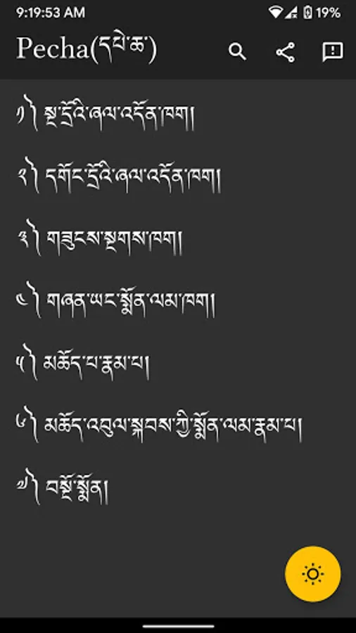 This is a simple app that contains Tibetan Buddhism prayers, where you can find the most used prayer for daily purposes. This app will be updated once a month or not with some new features as well as some new prayers. If you need some changes like the addition of some new prayers and on, feel free to suggest via clicking the feedback button, and please use the app in landscape mode for a better viewing angle.