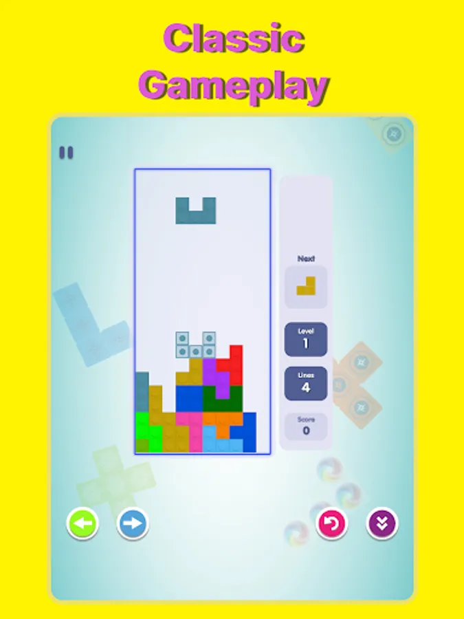 The game has tons of levels that challenge players to think strategically and use their logical skills to complete lines by moving differently shaped pieces (tetrominoes), which descend onto the playing field. The completed lines disappear and grant the player points, and the player can proceed to fill the vacated spaces. The game ends when the uncleared lines reach the top of the playing field. The longer the player can delay this outcome, the higher their score will be.