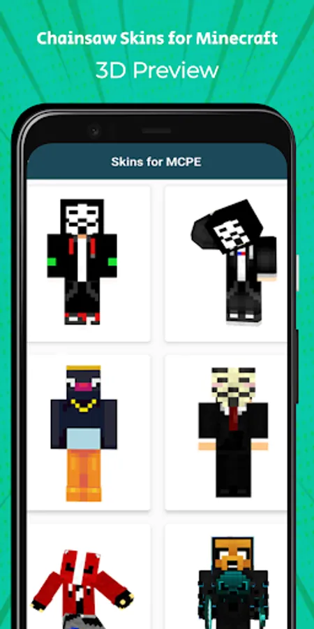 Change the default skin in Minecraft is easy, just download and putting on it. If you like playing minecraft and looking for characters chainsaw minecraft skin, then this app is very useful for you!