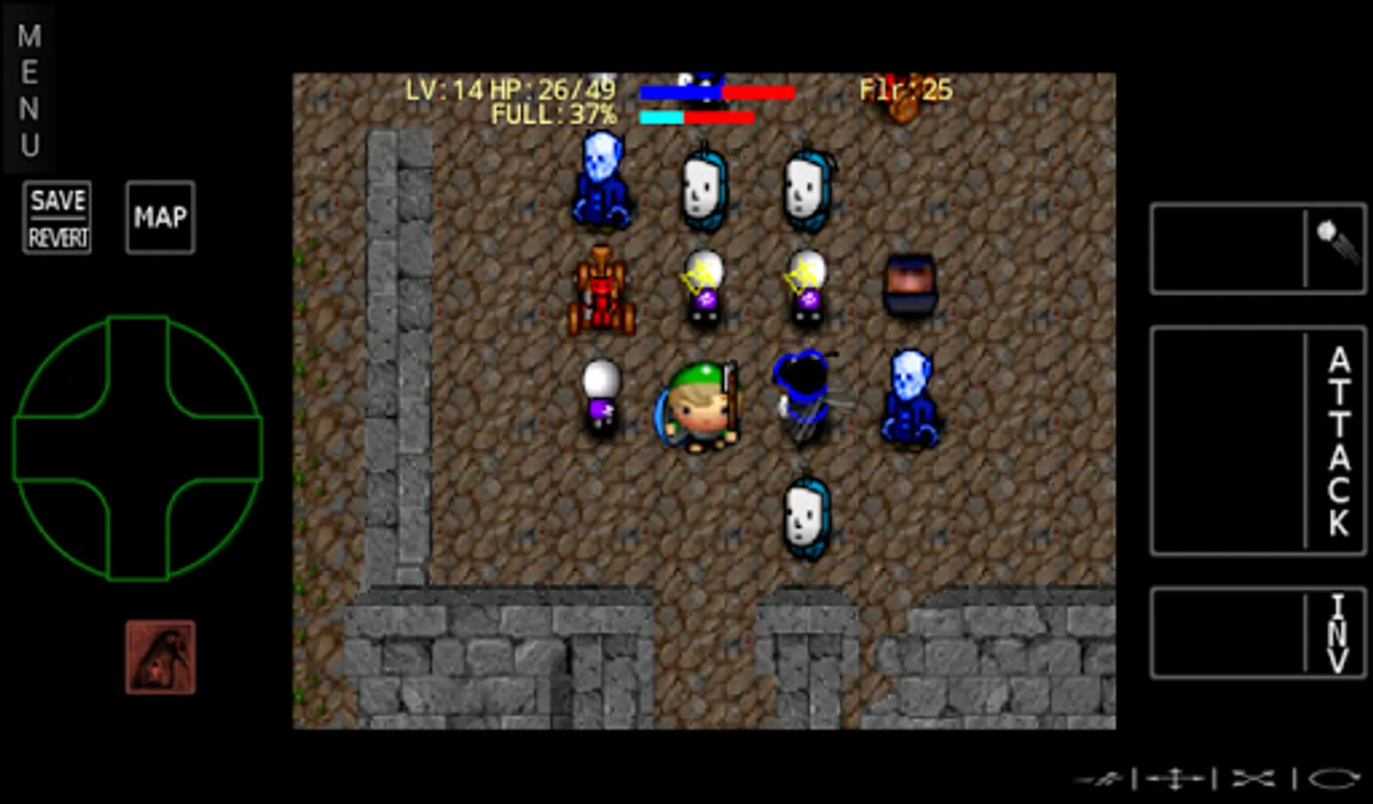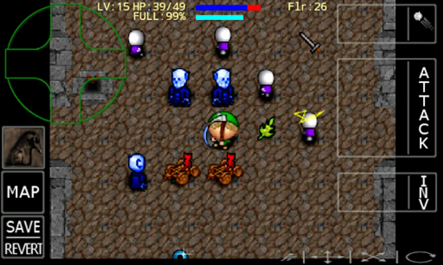 Tap MENU for docs. Check out our website for more hints (e.g. dealing with hunger, monster rooms, etc.), videos & an introduction to roguelike games (click "developer's webpage" link below)!