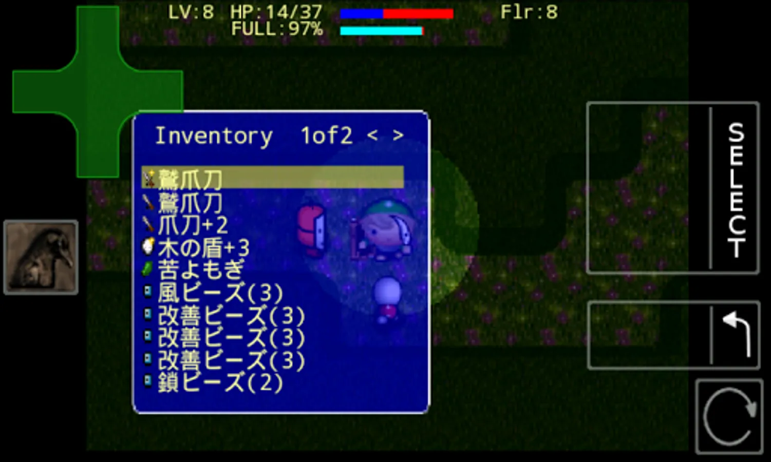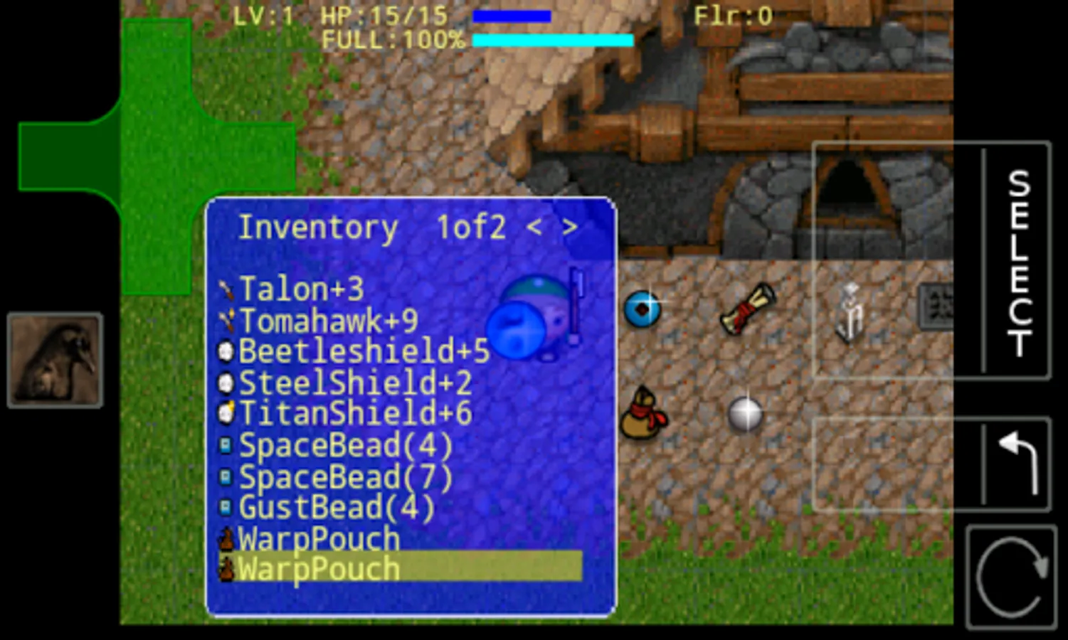 Hints: try the training dungeon first, equip a shield as soon as possible, make good use of the herbs/beads/scroll's secret powers (tap INV, then select Explain from the item's sub menu - use the DPAD or swipe up/down in the center of the touchscreen to scroll in menus). Find an empty vial, use it to capture & morph into a monster to really throw down and you'll be hooked.