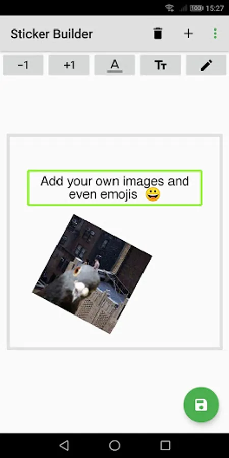 This Stickerbuilder not only allows you to create your own stickerpack by using the images you have taken or downloaded, but it also gives you a sticker workspace, where you can freely rotate, strech, shrink and change the position of you own images and editable textboxes. You can also use one of the many preinstalled overlay-sticker to make some great and funny WAStickers.